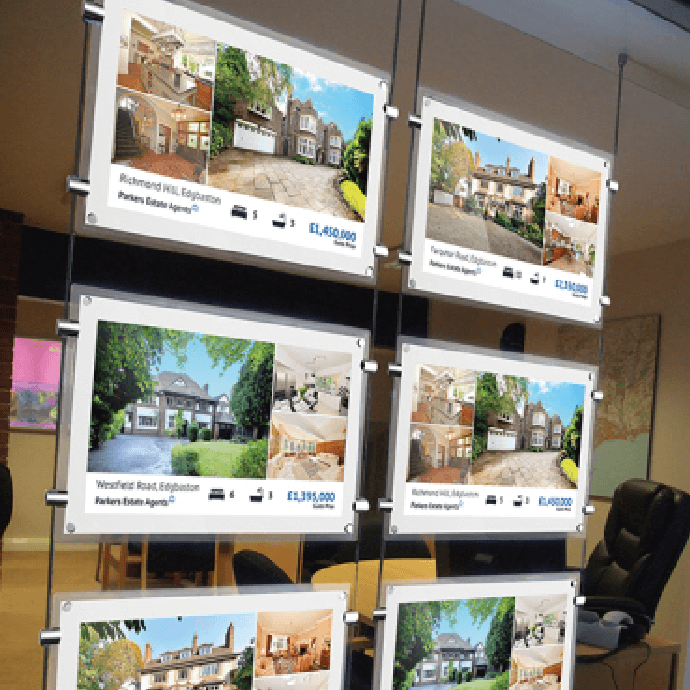 Bring estate agent windows to life with this state-of-the-art digital signage technology that replaces traditional light pockets