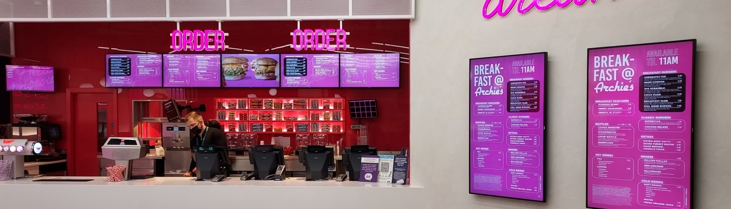 After a period of rapid expansion, made-in-Manchester burger franchise, Archies, were experiencing audio-visual growing pains when they first met the Astra Group team. Their content delivery system was designed for individual restaurants rather than a network of outlets and they were searching for a reliable and consistent AV integrator with airside access for a new outlet in an exciting location.